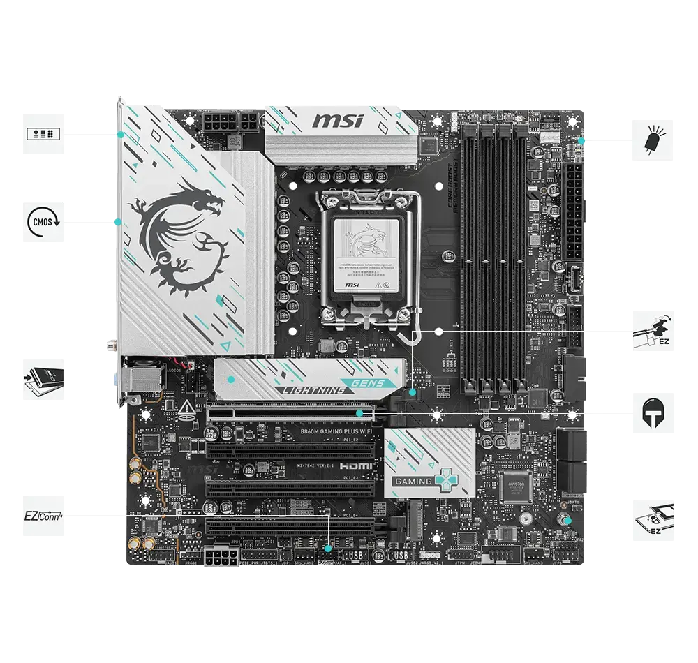 Frozr Guard: disipador de calor extendido, almohadillas térmicas MOSFET con clasificación de 7 W/mK, almohadillas térmicas de estrangulación adicionales y escudo EZ M.2 Frozr II están diseñados para un sistema de alto rendimiento y una experiencia ininterrumpida
