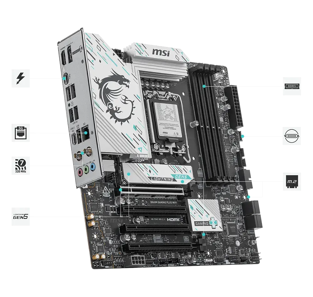 Ultra Connect: puerto Thunderbolt™ 4, Intel ® Killer™ 5G LAN e Intel ® Killer™ Wi-Fi 7 Solution: la última solución para uso profesional y multimedia, que ofrece transmisión de datos y redes seguras, estables y de alta velocidad.
